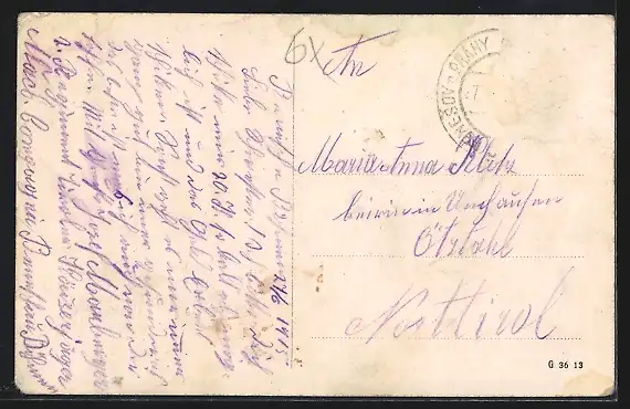 alte Ansichtskarte, gelaufen 1915, Briefmarke entfernt, rückseitig Oberflächenschaden, Ecken bestoßen, guter Zustand