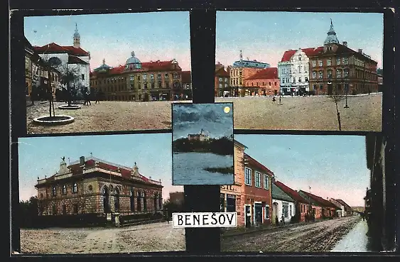 AK Benesov, Strassenpartie im Zentrum, Kirche