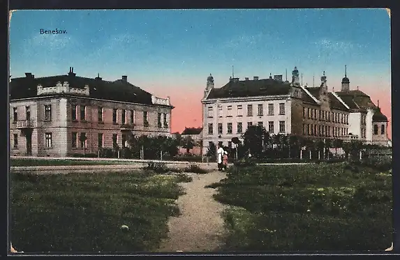AK Benesov, Strassenpartie mit öffentlichem Gebäude