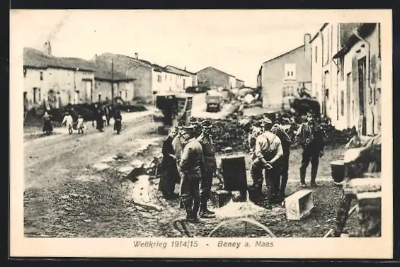 AK Beney-sur-Meuse, Strassenpartie mit Soldaten