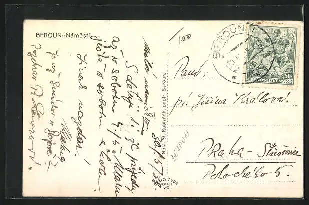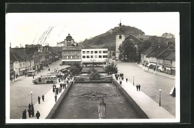AK Beraun / Beroun, Namesti, Radnice, Omnibusse