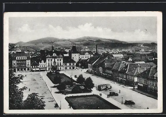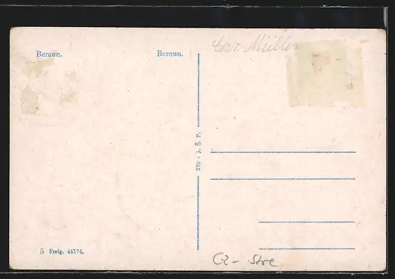 AK Beraun, Ortspartie mit Denkmal