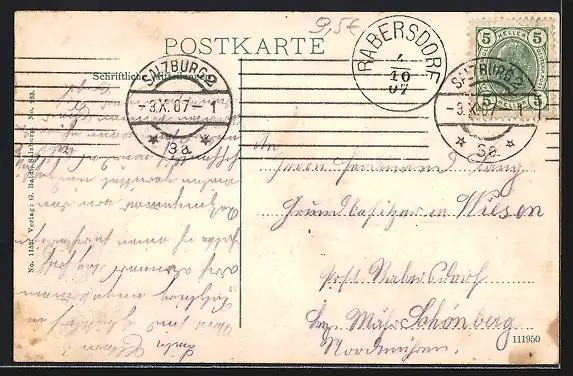 alte Ansichtskarte, gelaufen 1907, Stempelspur, guter Zustand