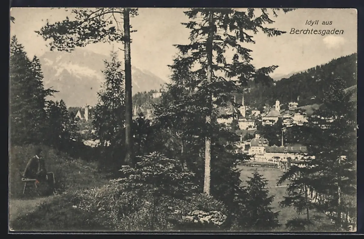 AK Berchtesgaden, Blick auf Stadt und Berge, Waldlandschaft