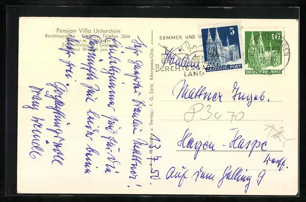 AK Berchtesgaden, Gasthaus Villa Unterstein