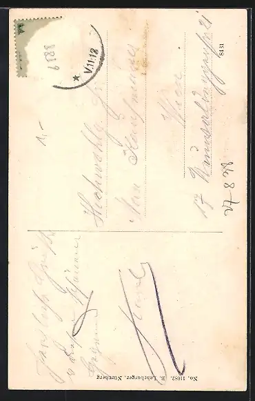 alte Ansichtskarte, gelaufen, Briefmarke entfernt, rückseitig Oberflächenschaden, guter Zustand