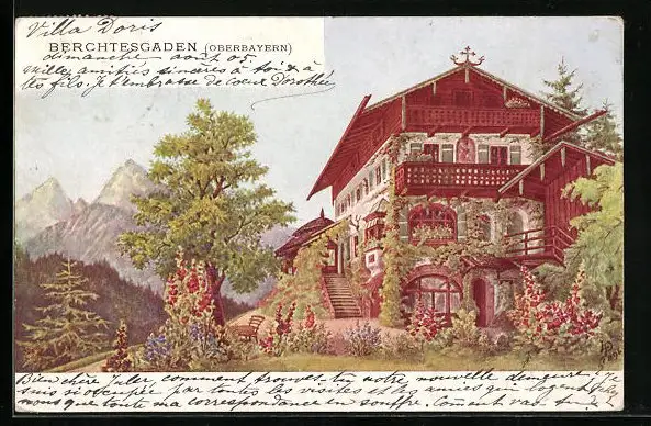 AK Berchtesgaden /Oberbayern, Blick auf ein Gasthaus