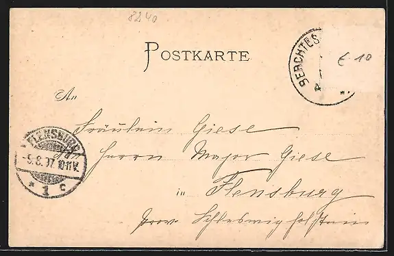 alte Ansichtskarte, gelaufen 1897, Stempelspur, Briefmarke entfernt, rückseitig Oberflächenschaden, guter Zustand