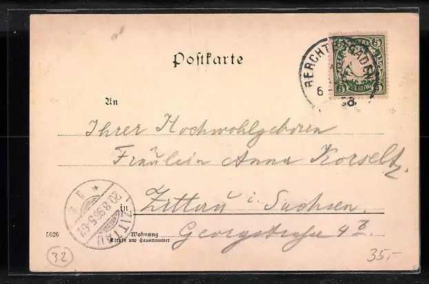 alte Ansichtskarte, gelaufen 1896, guter Zustand