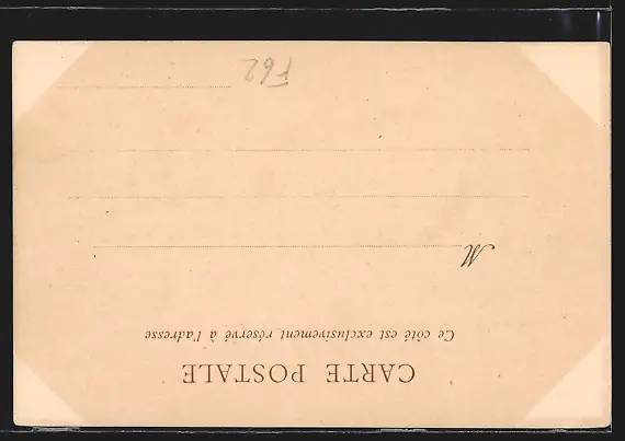 Personenbezogene Daten auf der Rückseite der Karte wurden durch blauen Textmarker unkenntlich gemacht. Die blauen Stellen sind auf die Vorderseite durchgeweicht und wirken sich negativ auf das Postkartenfoto aus