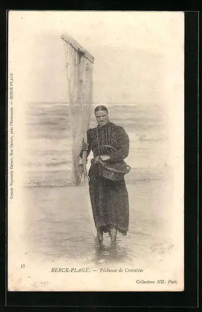 AK Berck-Plage, Pecheuse de Crevettes, Krebsfischerin mit Kescher