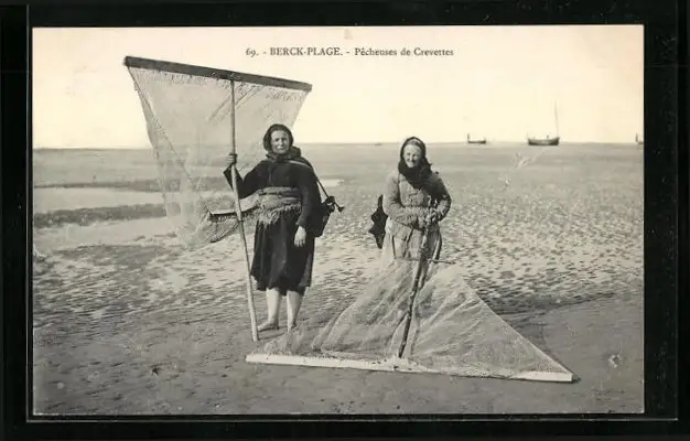 AK Berck-Plage, Pêcheuses de Crevettes, Zwei Krebsfischerinnen mit Keschern