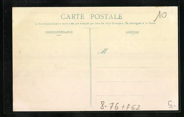 Personenbezogene Daten auf der Rückseite der Karte wurden durch blauen Textmarker unkenntlich gemacht. Die blauen Stellen sind auf die Vorderseite durchgeweicht und wirken sich negativ auf das Postkartenfoto aus