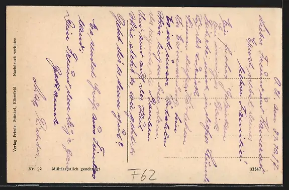 Personenbezogene Daten auf der Rückseite der Karte wurden durch blauen Textmarker unkenntlich gemacht. Die blauen Stellen sind auf die Vorderseite durchgeweicht und wirken sich negativ auf das Postkartenfoto aus