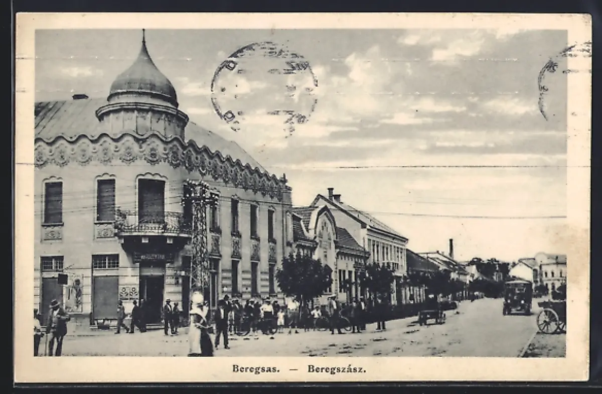 AK Beregsas, Strassenpartie mit Gebäudeansicht