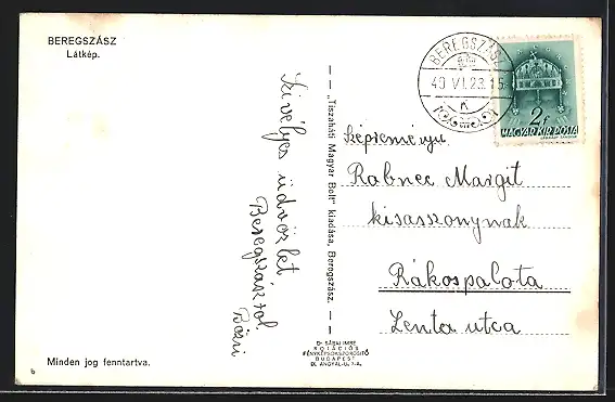 Personenbezogene Daten auf der Rückseite der Karte wurden durch blauen Textmarker unkenntlich gemacht. Die blauen Stellen sind auf die Vorderseite durchgeweicht und wirken sich negativ auf das Postkartenfoto aus