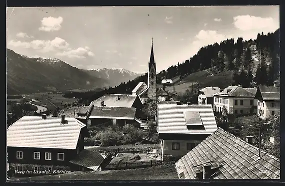 AK Berg im Drautal, Teilansicht mit Talblick und Bergpanorama