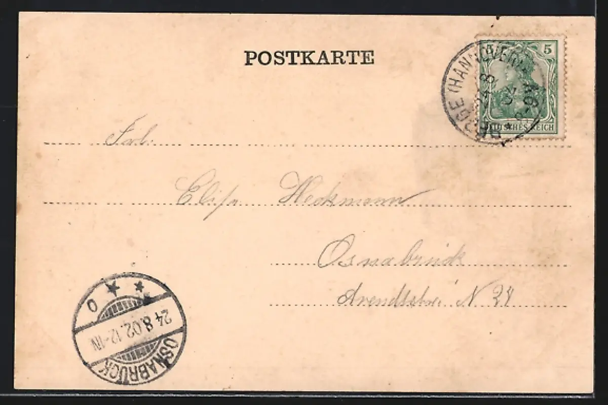 alte Ansichtskarte, gelaufen 1902, guter Zustand