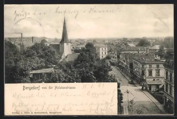 AK Bergedorf, Teilansicht mit Kirche von der Holstenstrasse