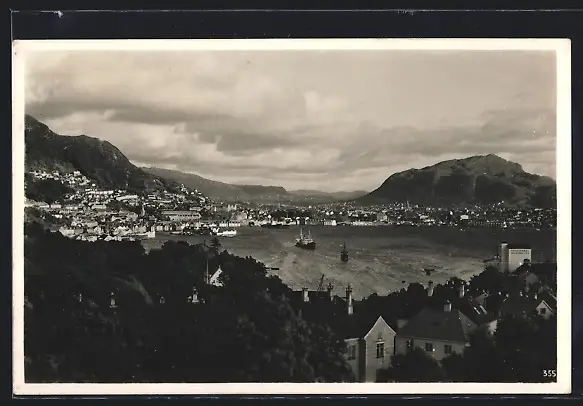 AK Bergen, Blick auf Stadt mit Hafen