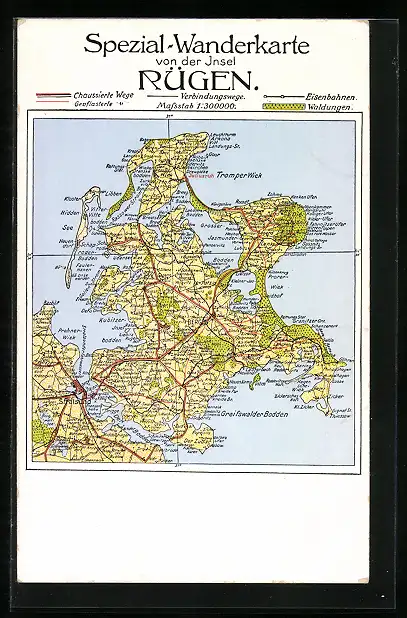 AK Bergen, Insel Rügen, Landkarte