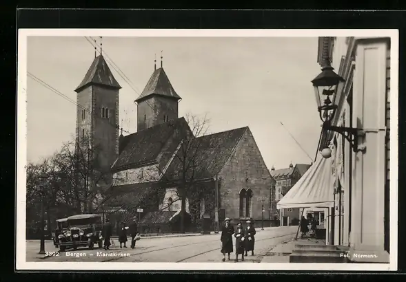 AK Bergen, Mariakirken, Strassenpartie an der Mariakirche