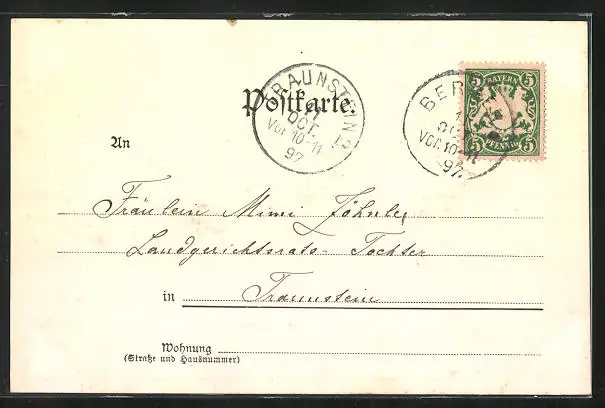 alte Ansichtskarte, gelaufen 1897, Stempelspur, guter Zustand