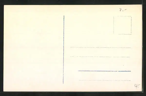Personenbezogene Daten auf der Rückseite der Karte wurden durch blauen Textmarker unkenntlich gemacht. Die blauen Stellen sind auf die Vorderseite durchgeweicht und wirken sich negativ auf das Postkartenfoto aus