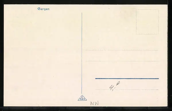 Personenbezogene Daten auf der Rückseite der Karte wurden durch blauen Textmarker unkenntlich gemacht. Die blauen Stellen sind auf die Vorderseite durchgeweicht und wirken sich negativ auf das Postkartenfoto aus