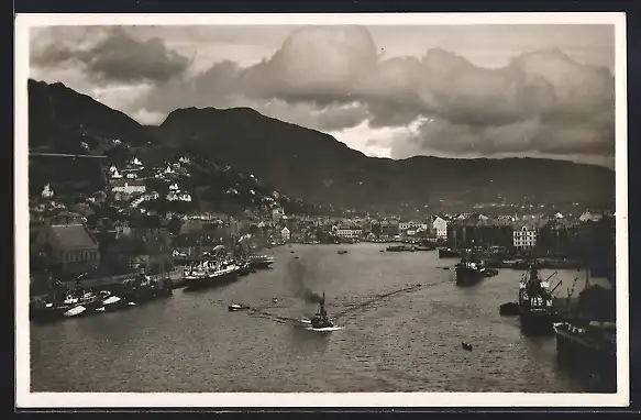 AK Bergen, Parti fra havnen, Blick in den Hafen