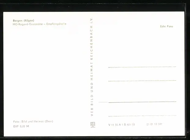 AK Bergen /Rügen, HO-Rugard-Gaststätte, Empfangshalle