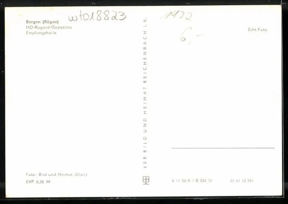 AK Bergen /Rügen, HO-Rugard-Gaststätte, Empfangshalle