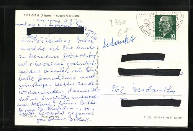 alte Ansichtskarte, gelaufen 1974, guter Zustand