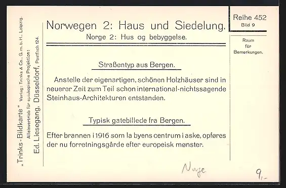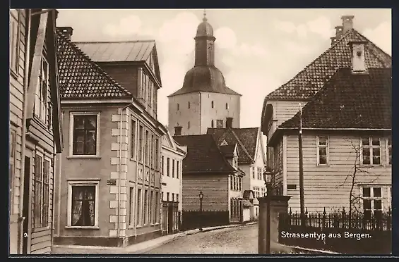 AK Bergen, Strassenpartie mit Holz- und Steinhäusern