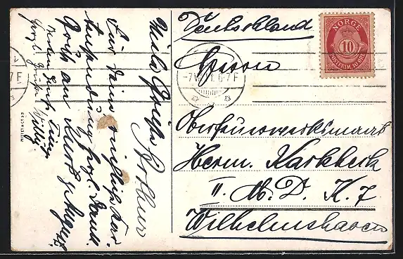 alte Ansichtskarte, gelaufen 1911, rückseitig Oberflächenschaden, Stempelspur, guter Zustand