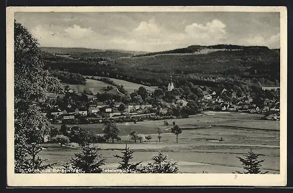 AK Bergen /Vgtl., Totalansicht mit Kirche