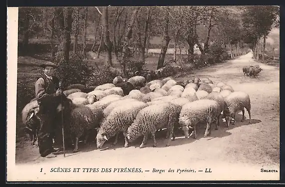 AK Berger des Pyrénées, Schäfer mit Schafen