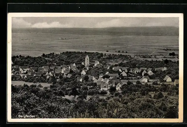 AK Bergfelden, Gesamtansicht mit Fernblick aus der Vogelschau
