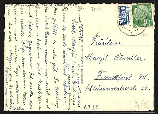alte Ansichtskarte, gelaufen 1955, guter Zustand