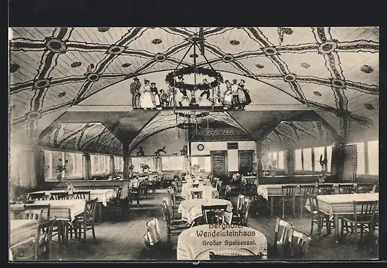 AK Berghotel Wendelsteinhaus, Grosser Speisesaal, Innenansicht