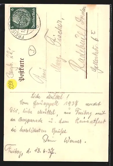 alte Ansichtskarte, gelaufen 1937, guter Zustand