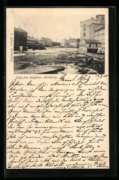 AK Bergsbron /Norrköping, Blick zum Wehr