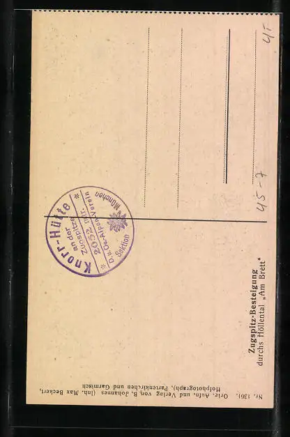 Personenbezogene Daten auf der Rückseite der Karte wurden durch blauen Textmarker unkenntlich gemacht. Die blauen Stellen sind auf die Vorderseite durchgeweicht und wirken sich negativ auf das Postkartenfoto aus