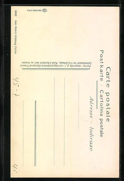 Personenbezogene Daten auf der Rückseite der Karte wurden durch blauen Textmarker unkenntlich gemacht. Die blauen Stellen sind auf die Vorderseite durchgeweicht und wirken sich negativ auf das Postkartenfoto aus