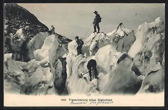 AK Bergsteiger bei der Traversierung eines Gletschers