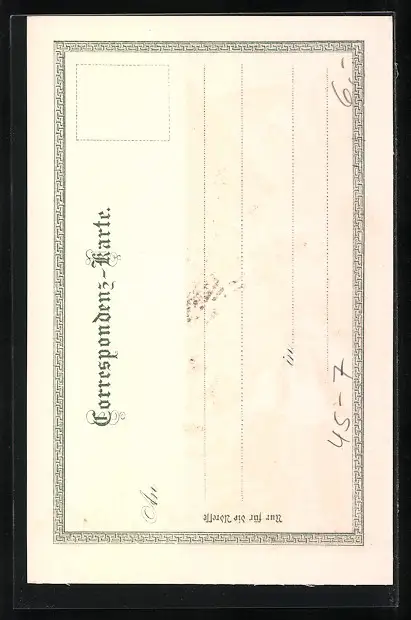 Personenbezogene Daten auf der Rückseite der Karte wurden durch blauen Textmarker unkenntlich gemacht. Die blauen Stellen sind auf die Vorderseite durchgeweicht und wirken sich negativ auf das Postkartenfoto aus