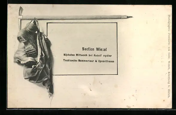 AK Bergsteigerausrüstung, Schuhe, Rucksack, Spitzhacke