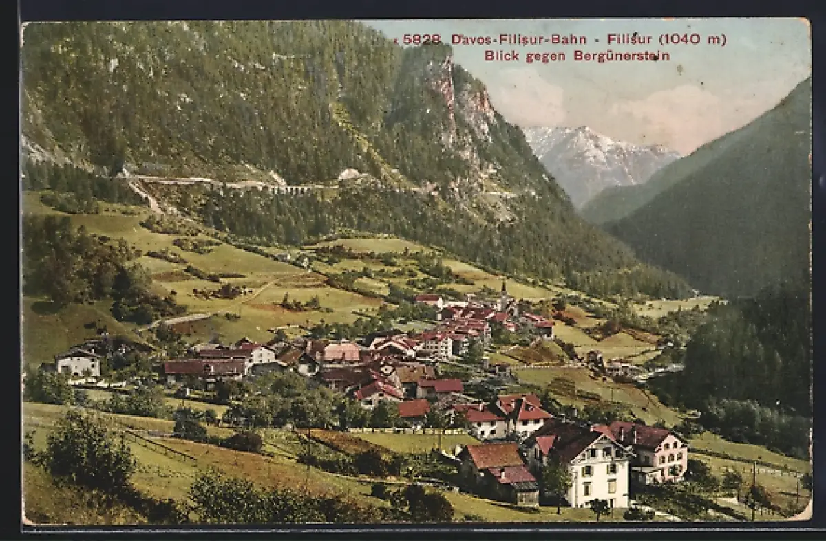 AK Bergün, Blick gegen Bergünstein, Panorama
