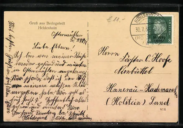 alte Ansichtskarte, gelaufen 1930, guter Zustand