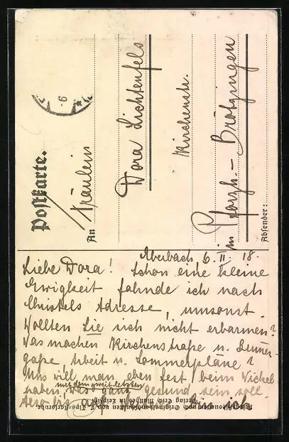 alte Ansichtskarte, gelaufen, Briefmarke entfernt, guter Zustand